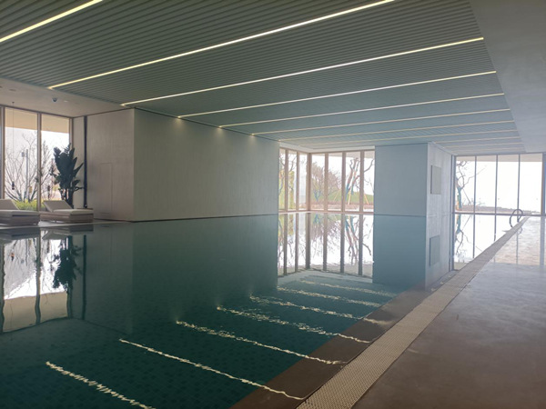 太阳山老鹰地旅游度假村项目汐岸B04地块的游泳池工程项目现已进入施工后期阶段,其中包括室内恒温泳池,体积400m³/H(成人池+儿童池),循环周期4H,水池设定温度28摄氏度;室外泳池240m³/H,循环周期4H,为常温水池。游泳池设备采用颗粒压力式过滤器,分流量全程式臭氧+长效氯消毒设备,泳池采用专用型空气源热泵加热,室内恒温恒湿系统。