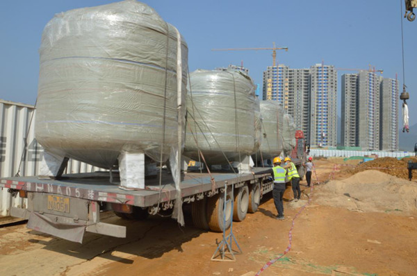 2021年1月23日,由联盛集团承造清远奥体中心泳游泳馆水处理及恒温系统工程迎来阶段性进展。游泳池设备包含21个大型过滤消毒设备和4台大型多功能除湿热泵,按照原定计划吊装进设备机房。