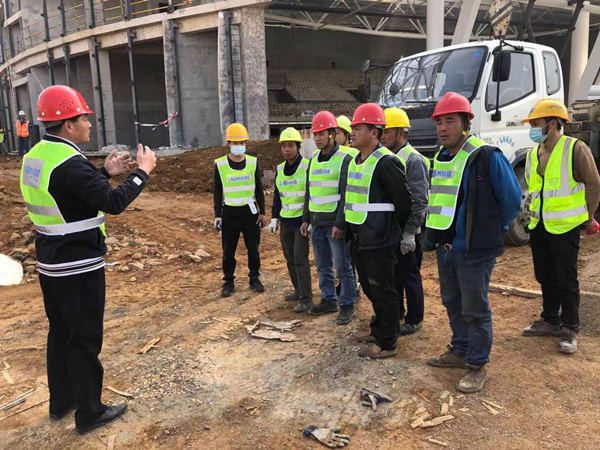 联盛工程主管在组织完吊装安全教育后开始进行吊装工作。