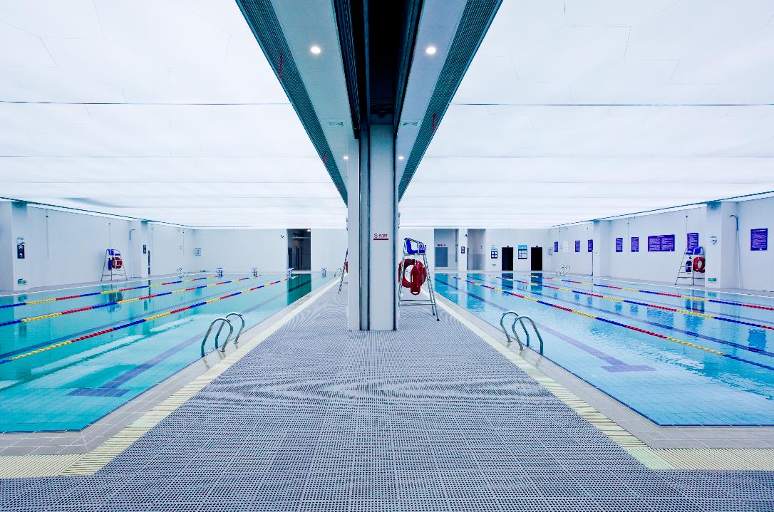 ⑤根据中、小学生的特点以及学校的教学要求,如修建的是标池或短标池,可适当减少泳道间距,将标准2.5米间距调整为2.0米间距,增加学生入水频率。